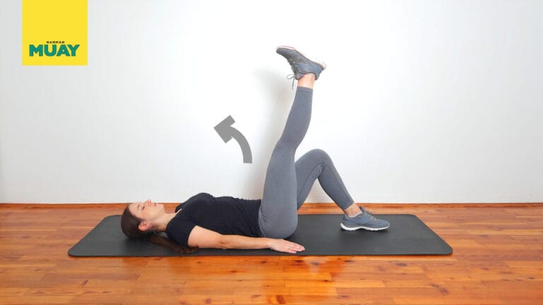 Das Beinheben in Rückenlage stärkt die Quadrizeps- und Hüftbeugemuskulatur und unterstützt die Kniestabilität. Eine Schlüsselübung zur Erholung und Verbesserung der Kontrolle der unteren Gliedmaßen.