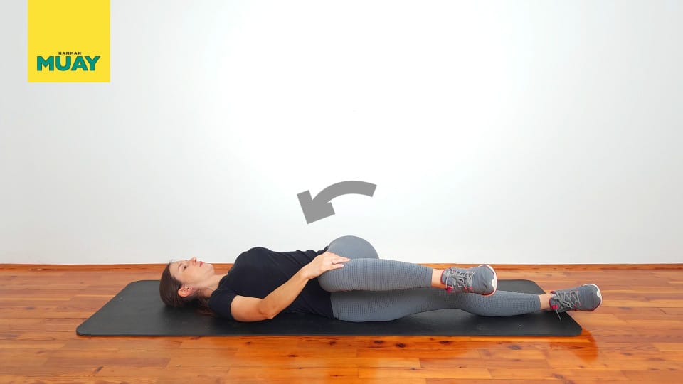 Diese einfache Bodenübung dreht die Wirbelsäule sanft, erhöht die Beweglichkeit und verbessert die Durchblutung verspannter haltungsstabilisierender Muskeln.